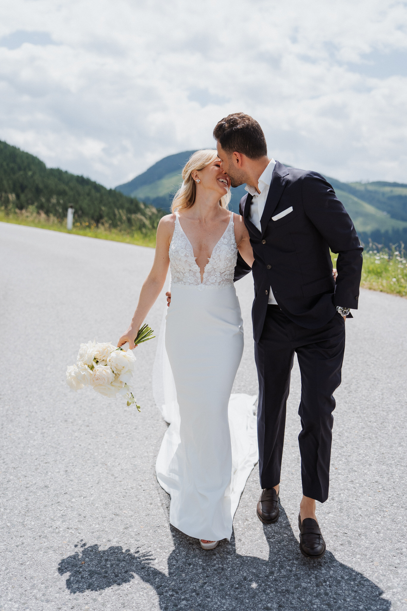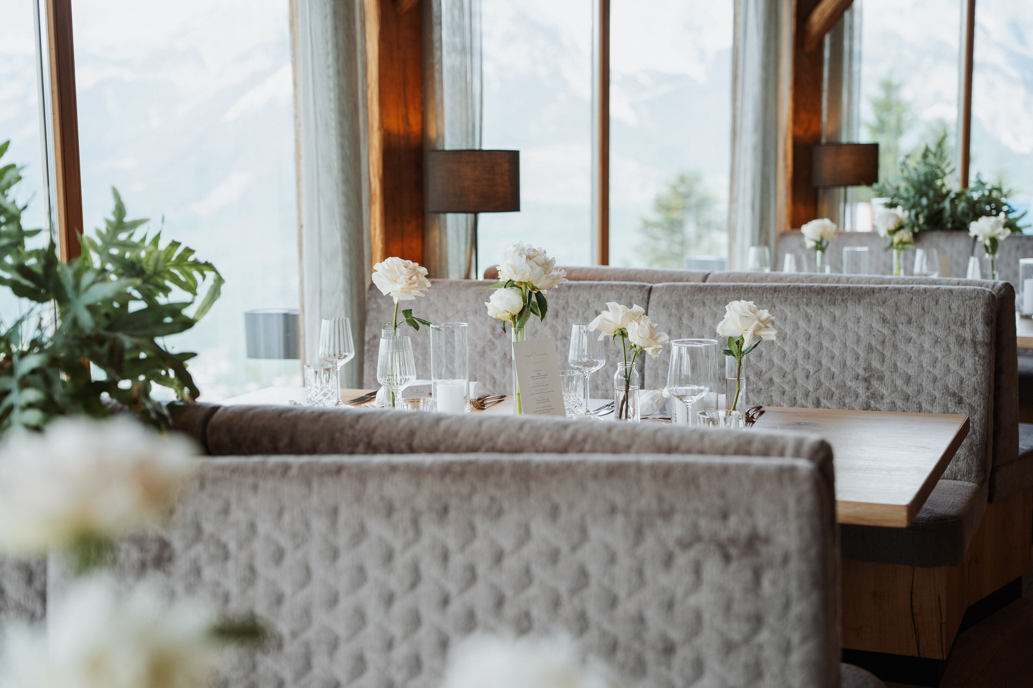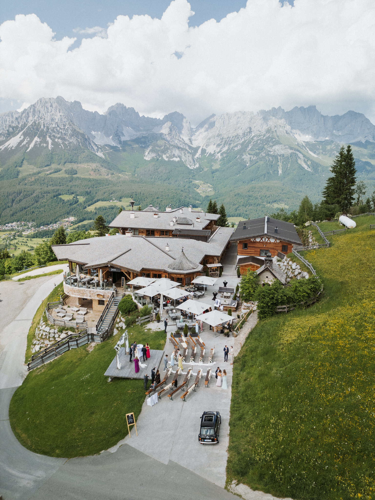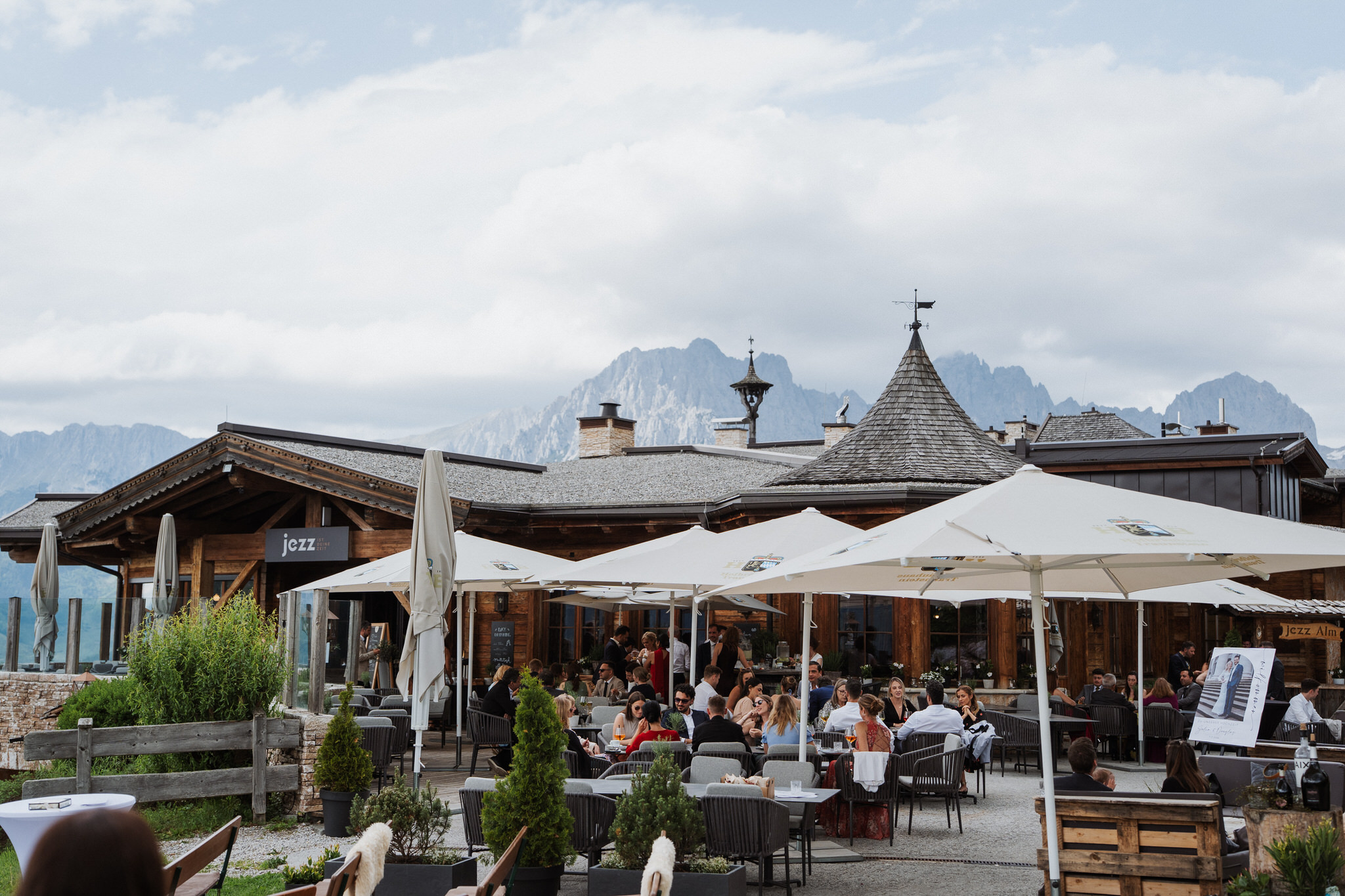 Gefeiert wurde auf der Jezz Alm im Jezz Alm Resort, einer traumhaften Hochzeitslocation in Tirol mit spektakulärem Blick auf den Wilden Kaiser. Umgeben von malerischen Bergen bietet dieser Ort alles, was man sich für eine Hochzeit in den Alpen wünschen kann: eine großzügige Terrasse für Trauungen im Freien, ein stilvoller Bereich für die Abendtafel und ein herzlicher, professioneller Service, der keine Wünsche offenlässt.