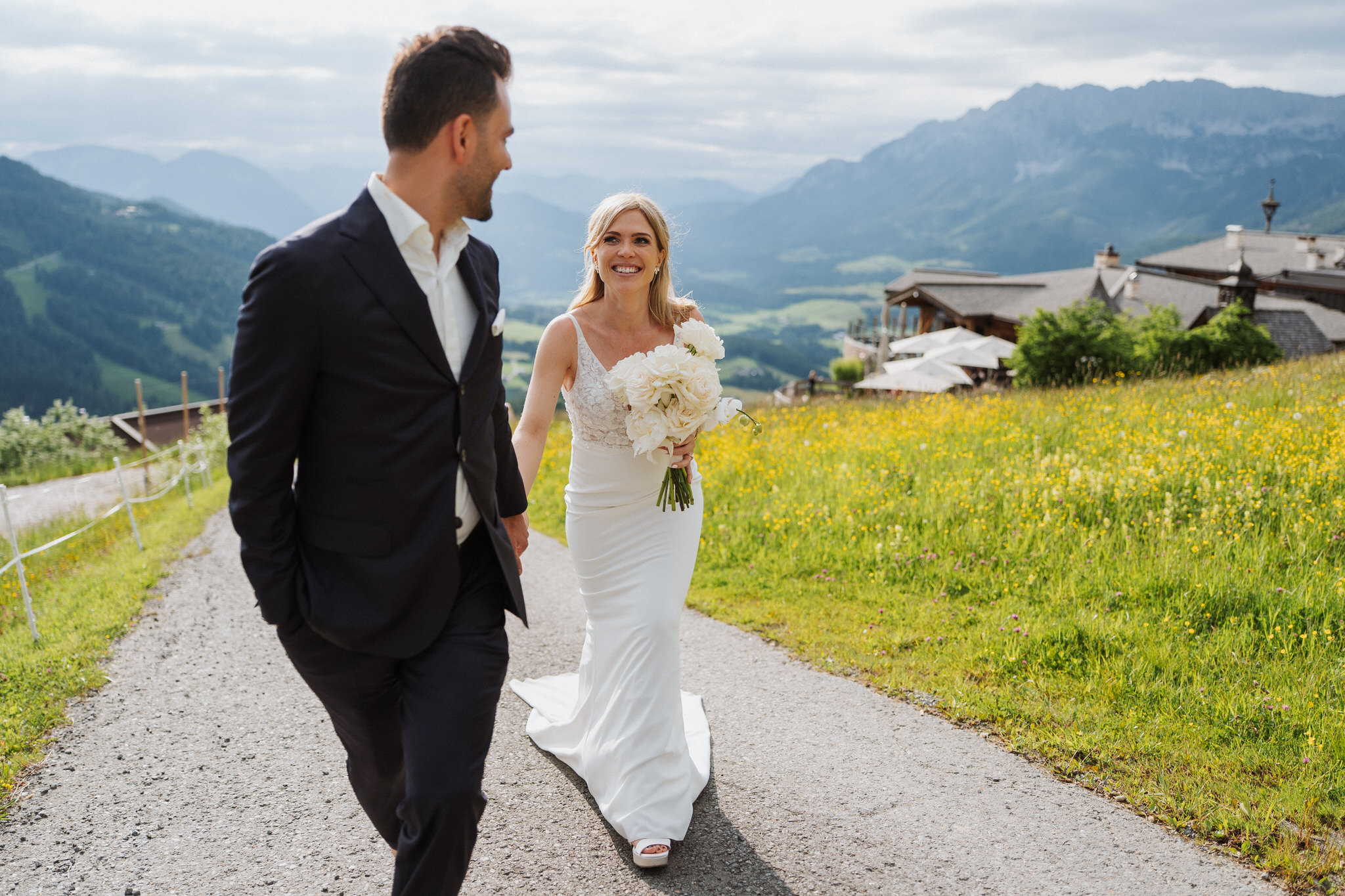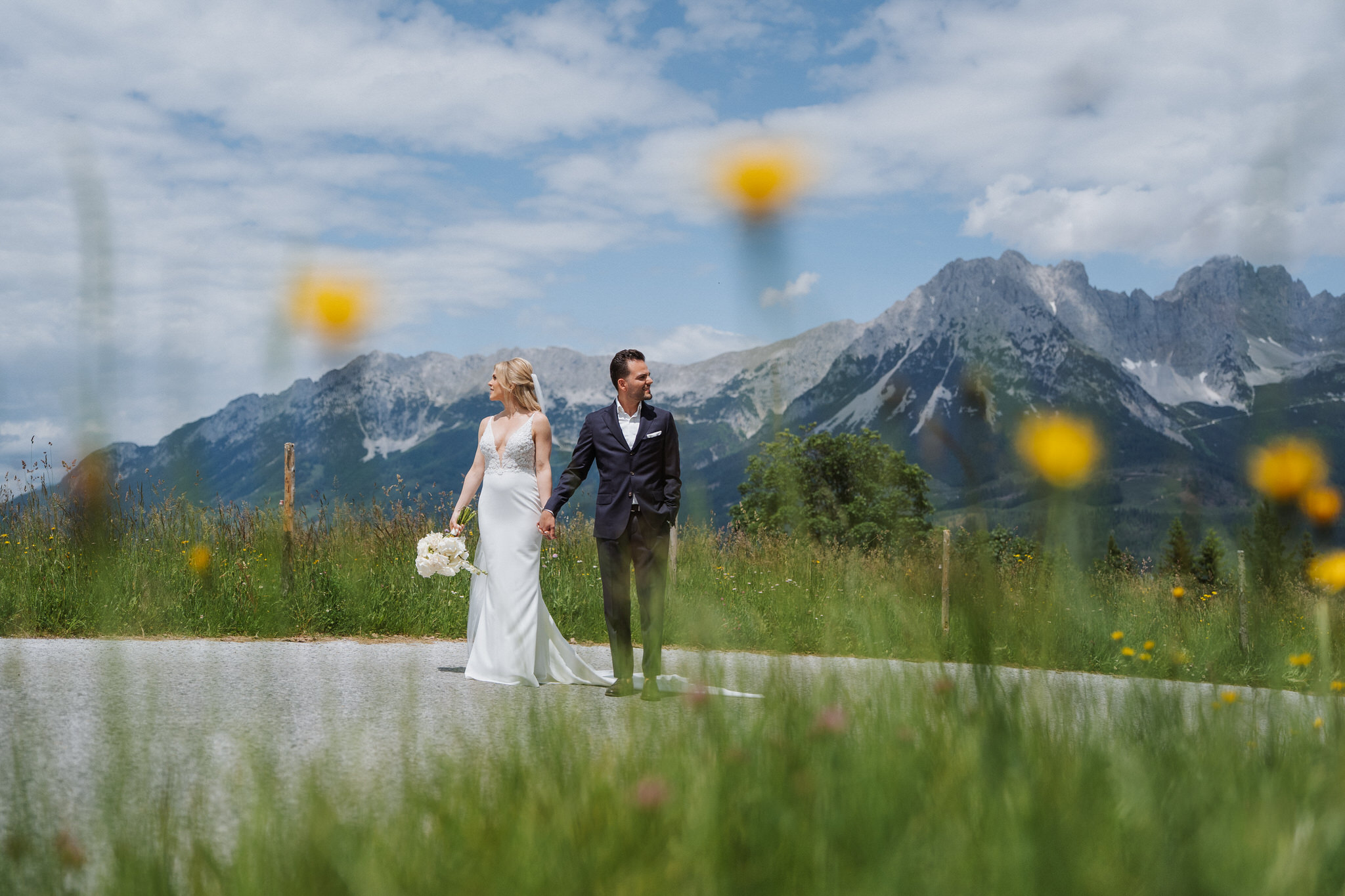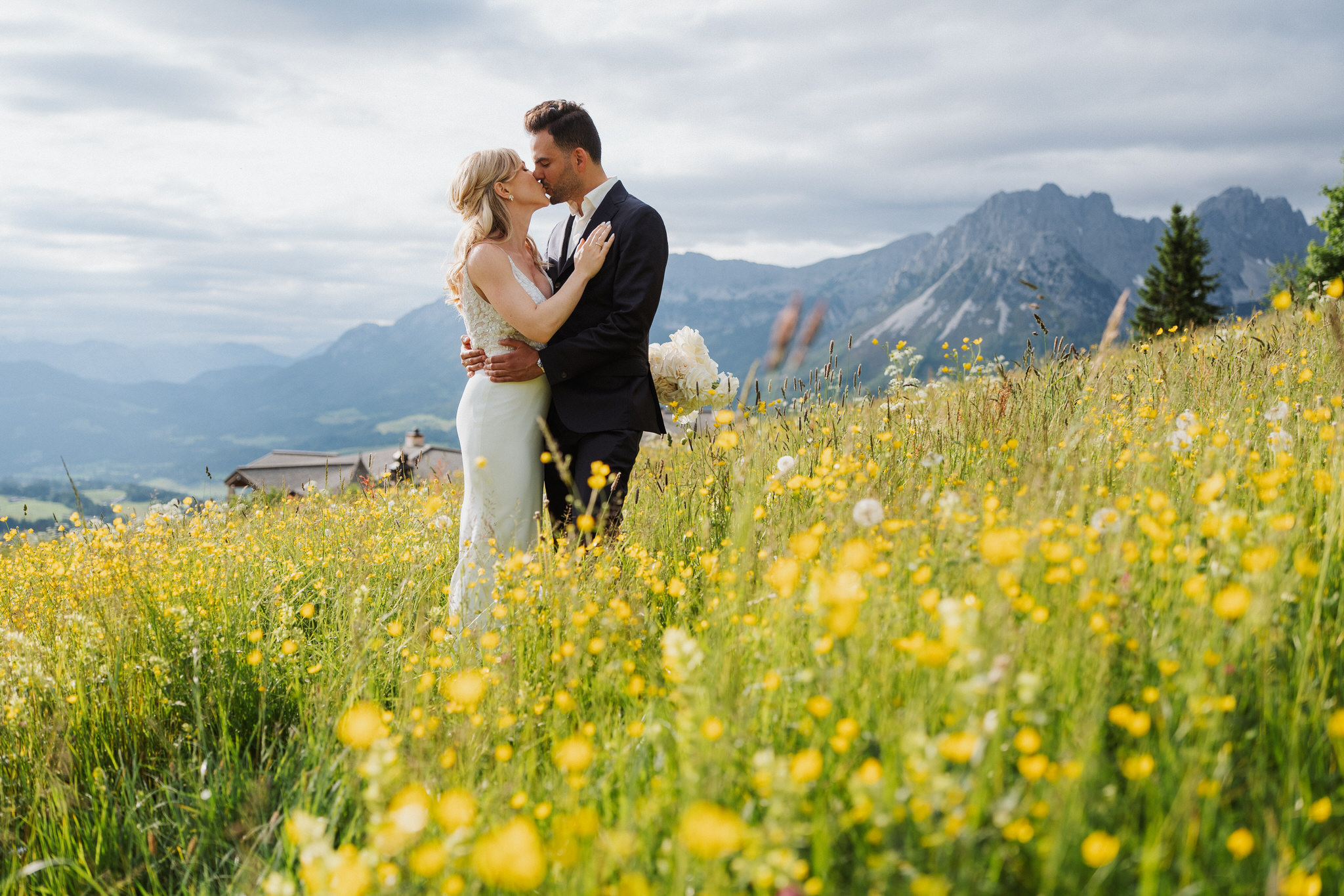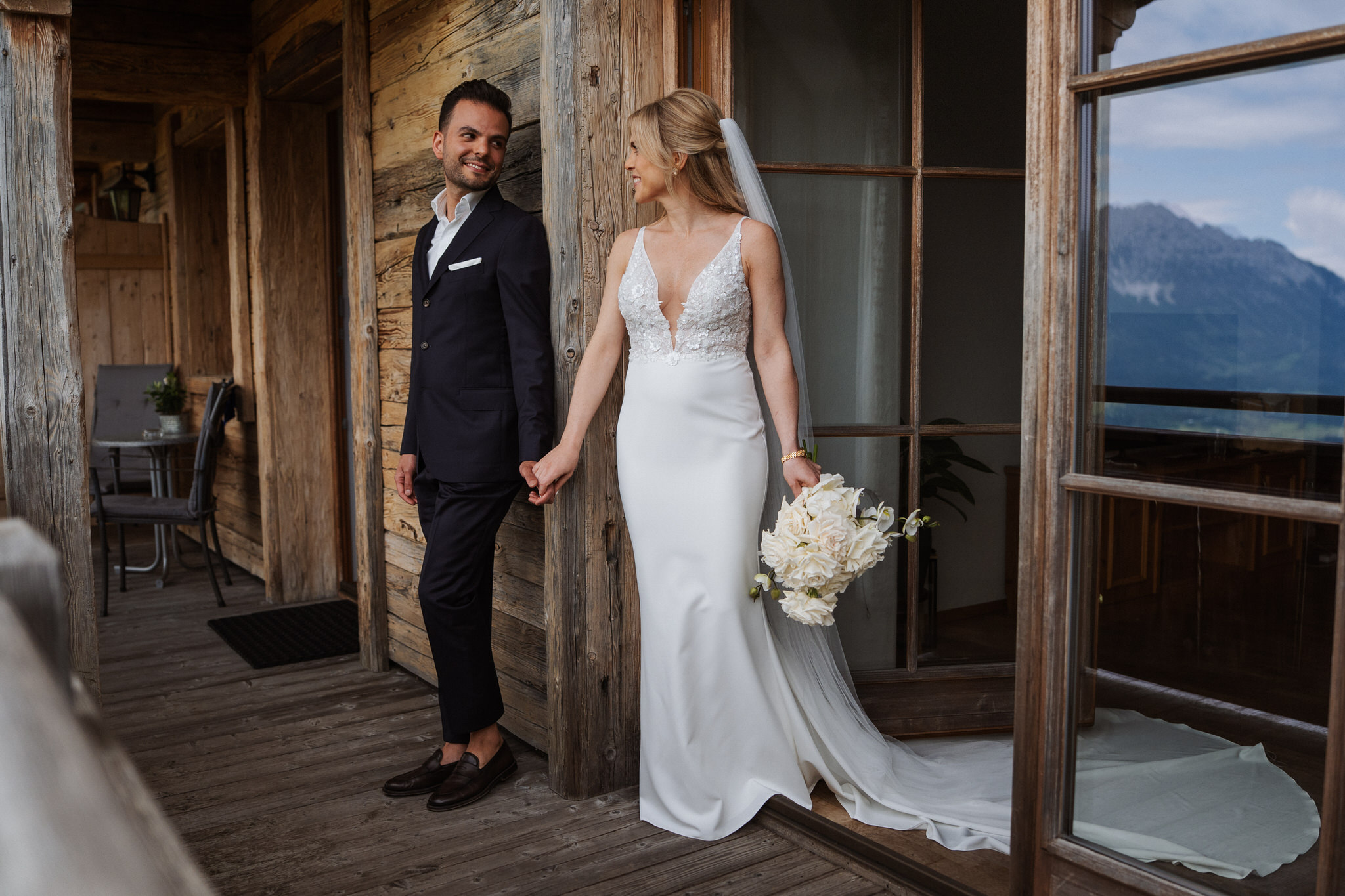 Gefeiert wurde auf der Jezz Alm im Jezz Alm Resort, einer traumhaften Hochzeitslocation in Tirol mit spektakulärem Blick auf den Wilden Kaiser. Umgeben von malerischen Bergen bietet dieser Ort alles, was man sich für eine Hochzeit in den Alpen wünschen kann: eine großzügige Terrasse für Trauungen im Freien, ein stilvoller Bereich für die Abendtafel und ein herzlicher, professioneller Service, der keine Wünsche offenlässt.