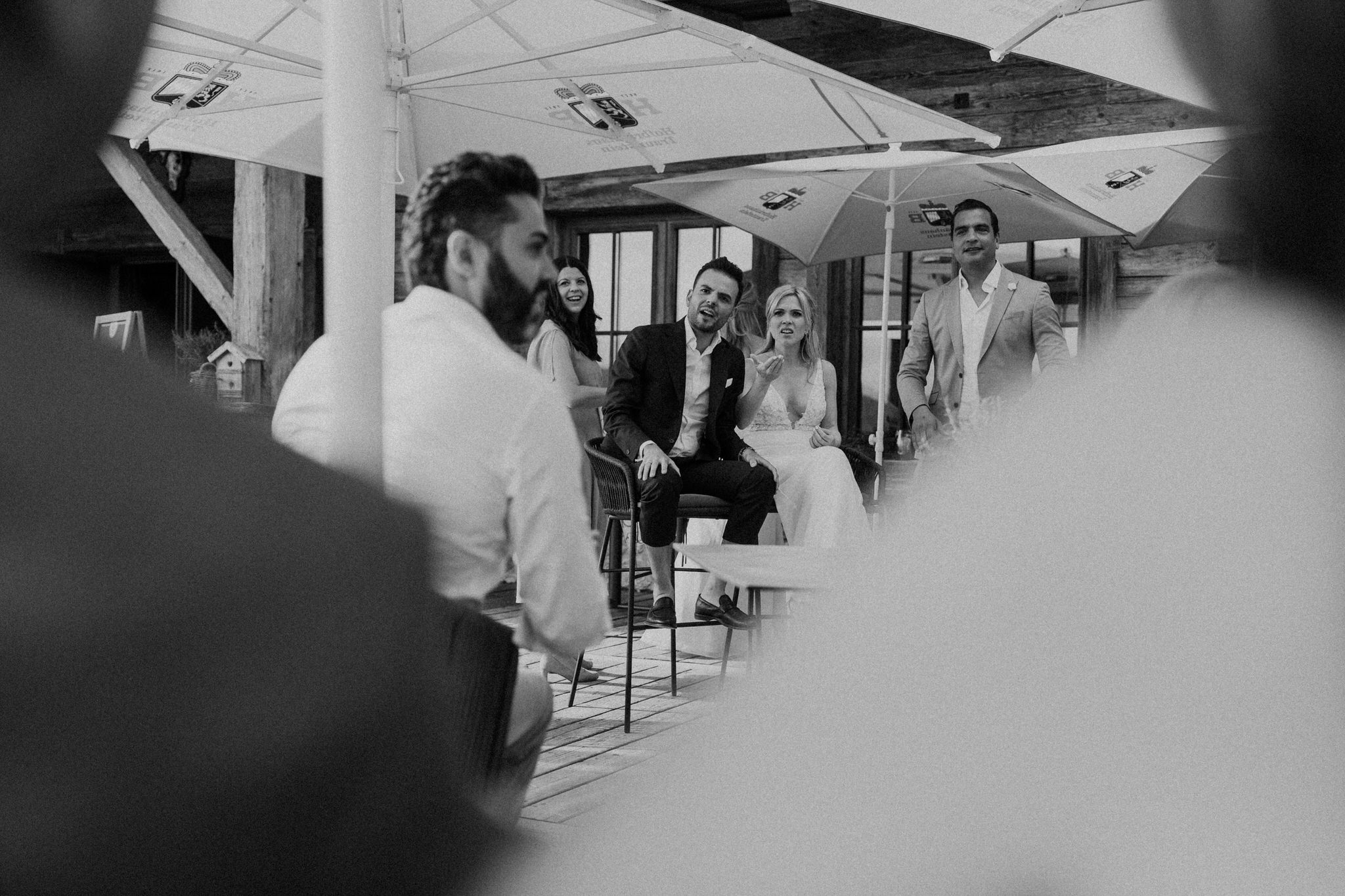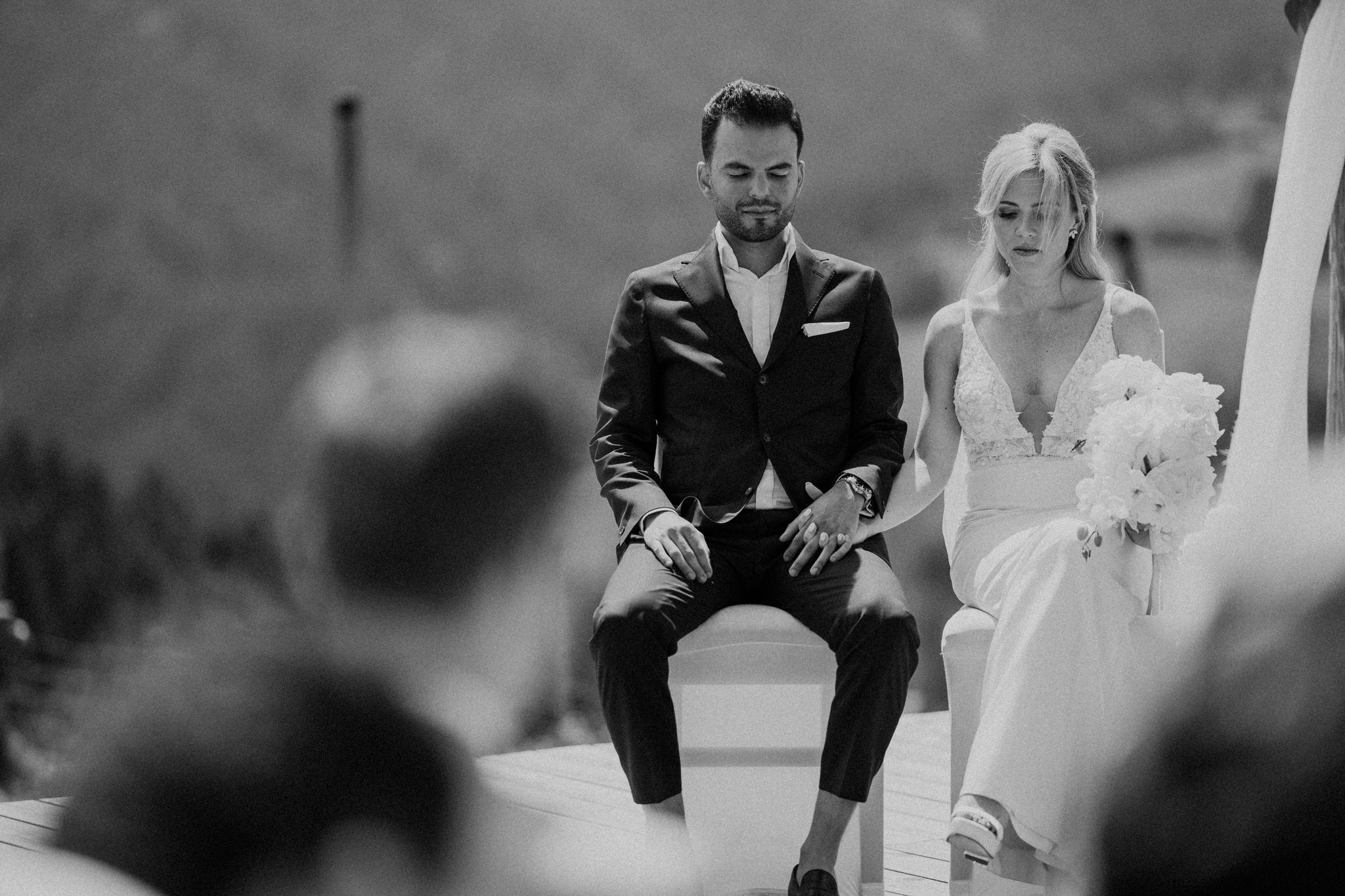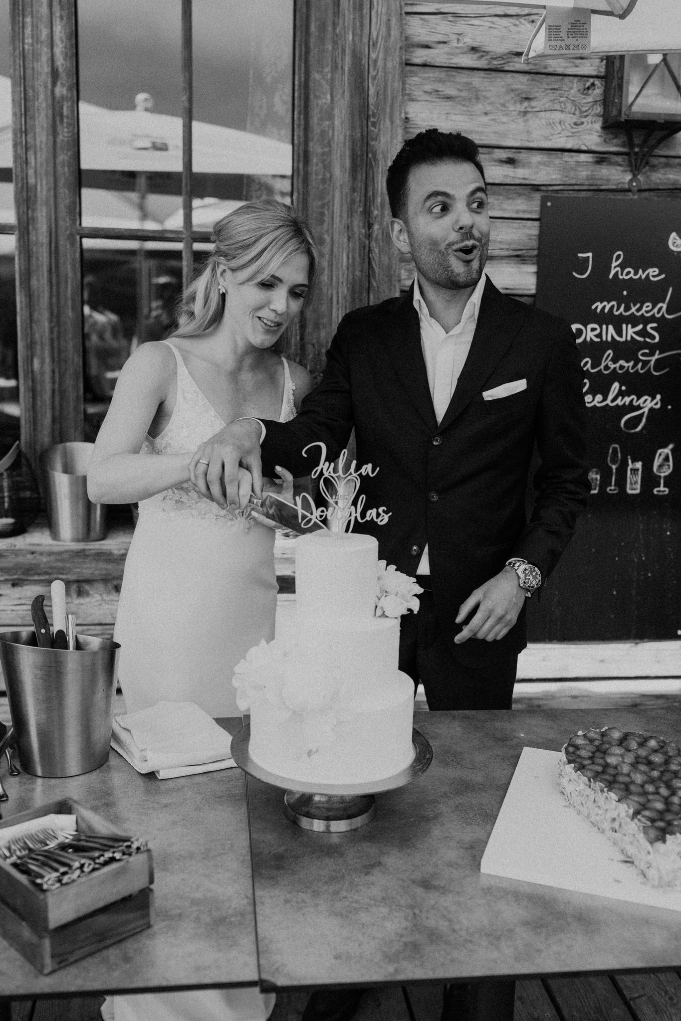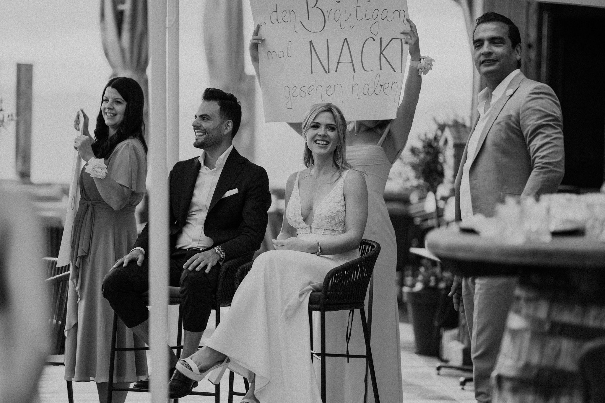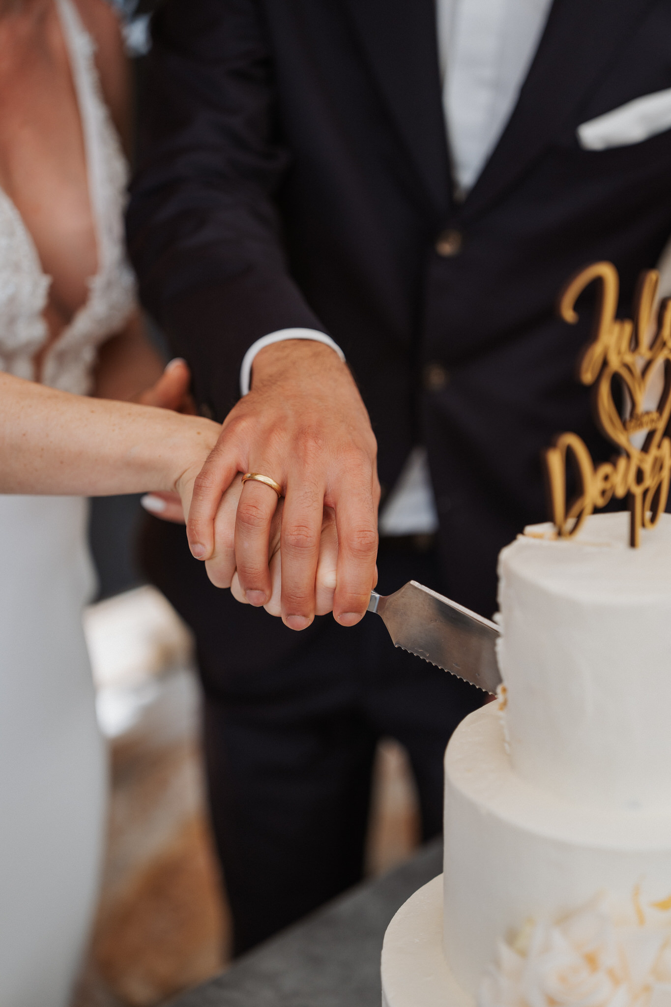 Die freie Trauung auf der Terrasse war persönlich, emotional und liebevoll gestaltet – ein Moment, der nicht nur das Brautpaar, sondern auch alle Gäste tief berührte. Anschließend wurde auf der Sonnenterrasse gratuliert, angestoßen und natürlich gefeiert. Bei Drinks, Hochzeitstorte und viel Lachen genossen alle den herrlichen Nachmittag mit Blick auf die Tiroler Bergwelt.