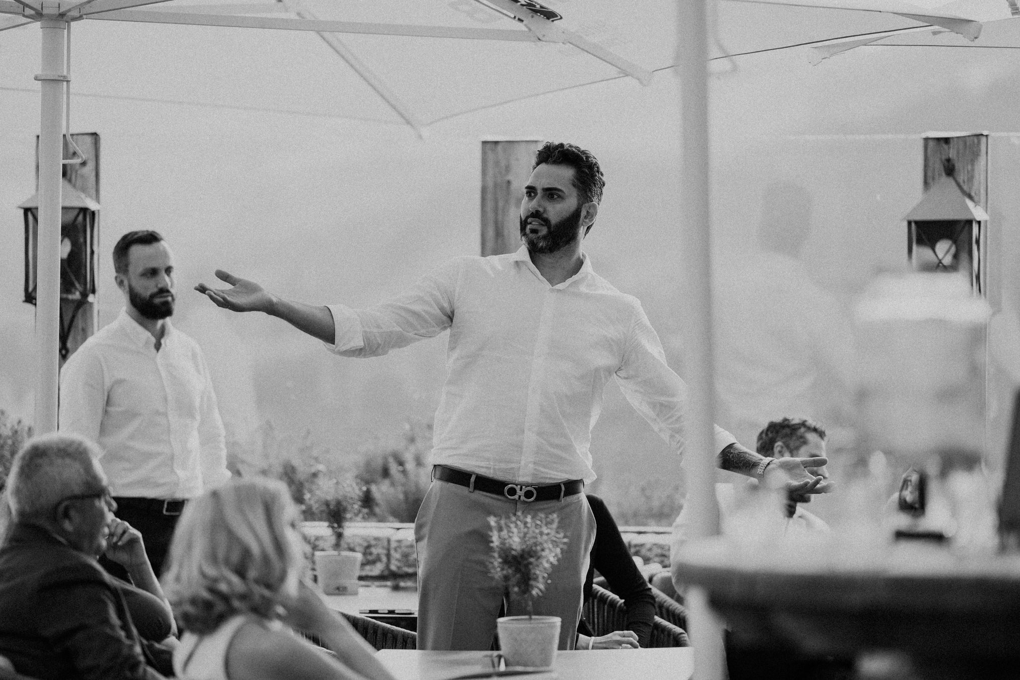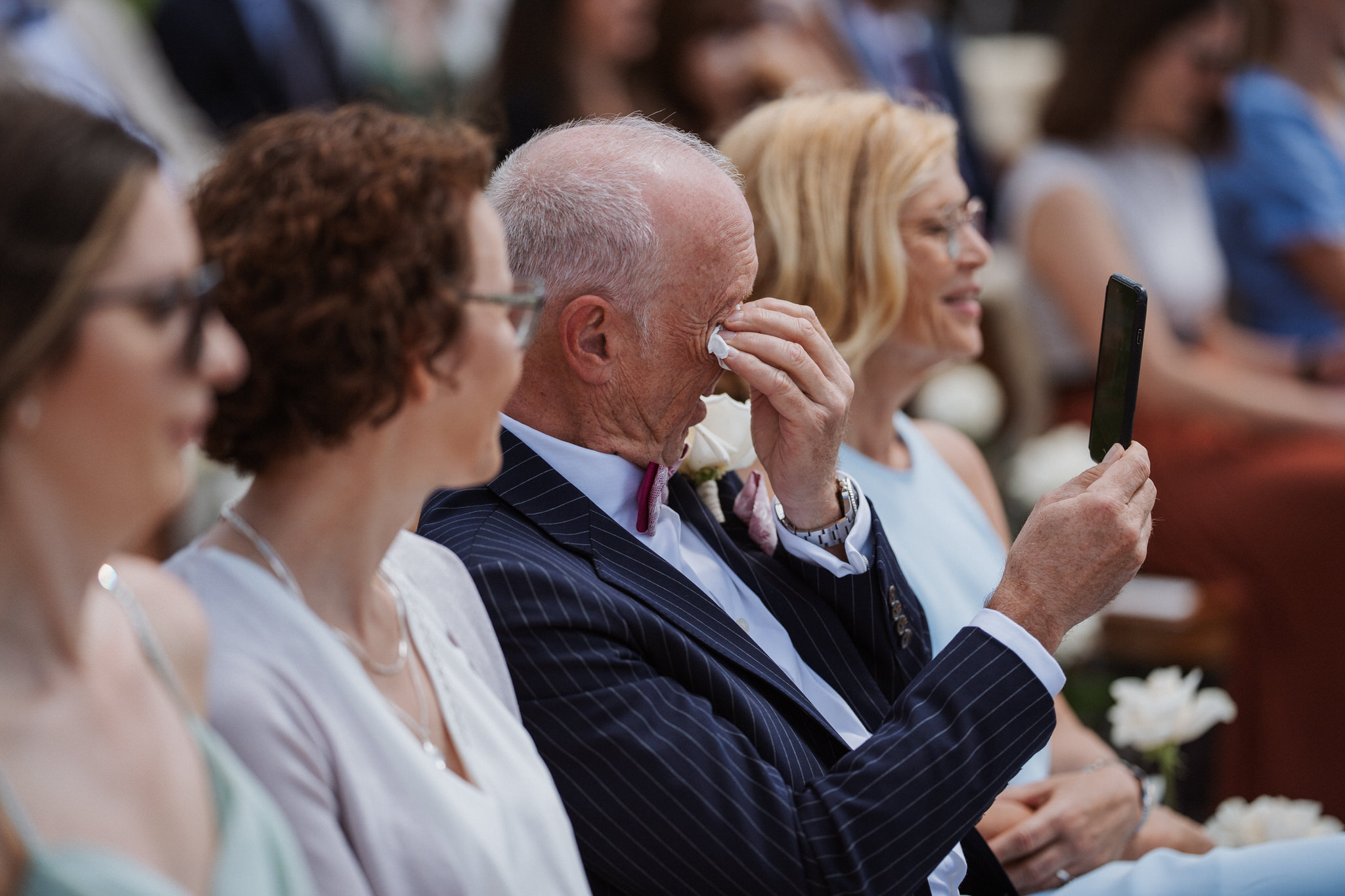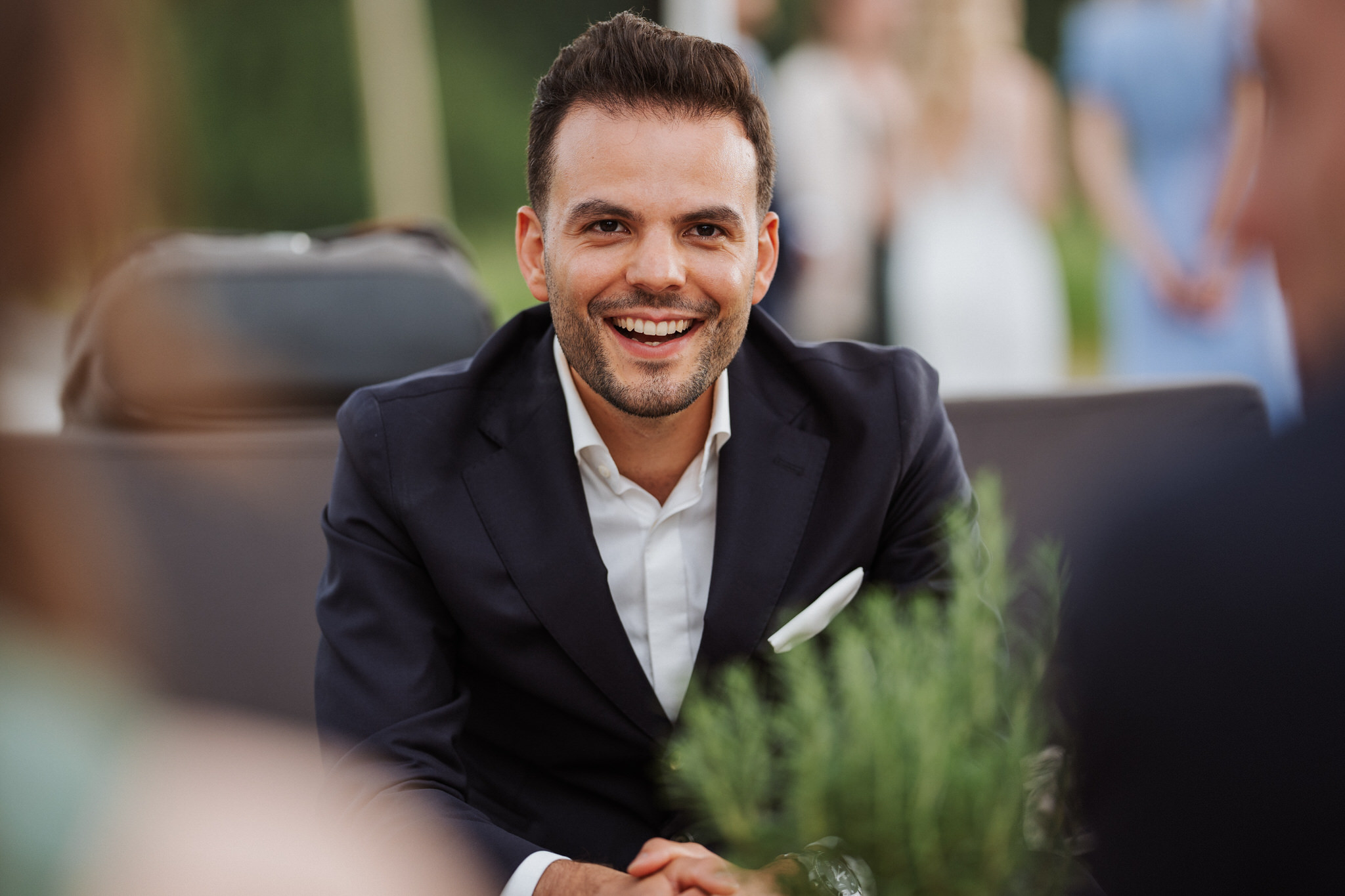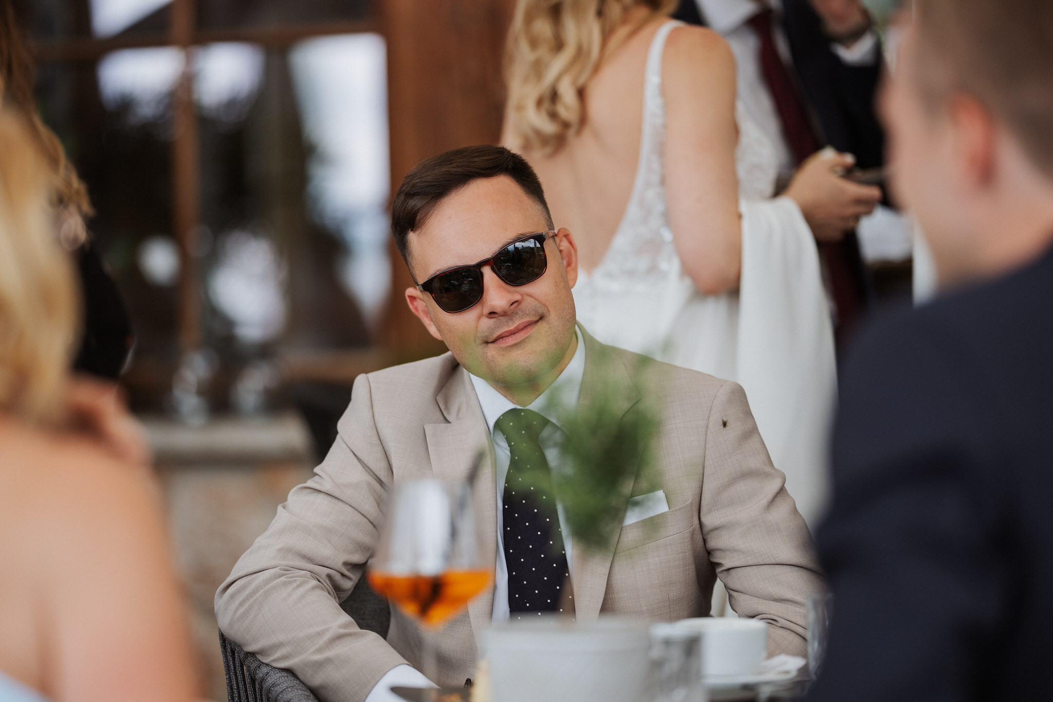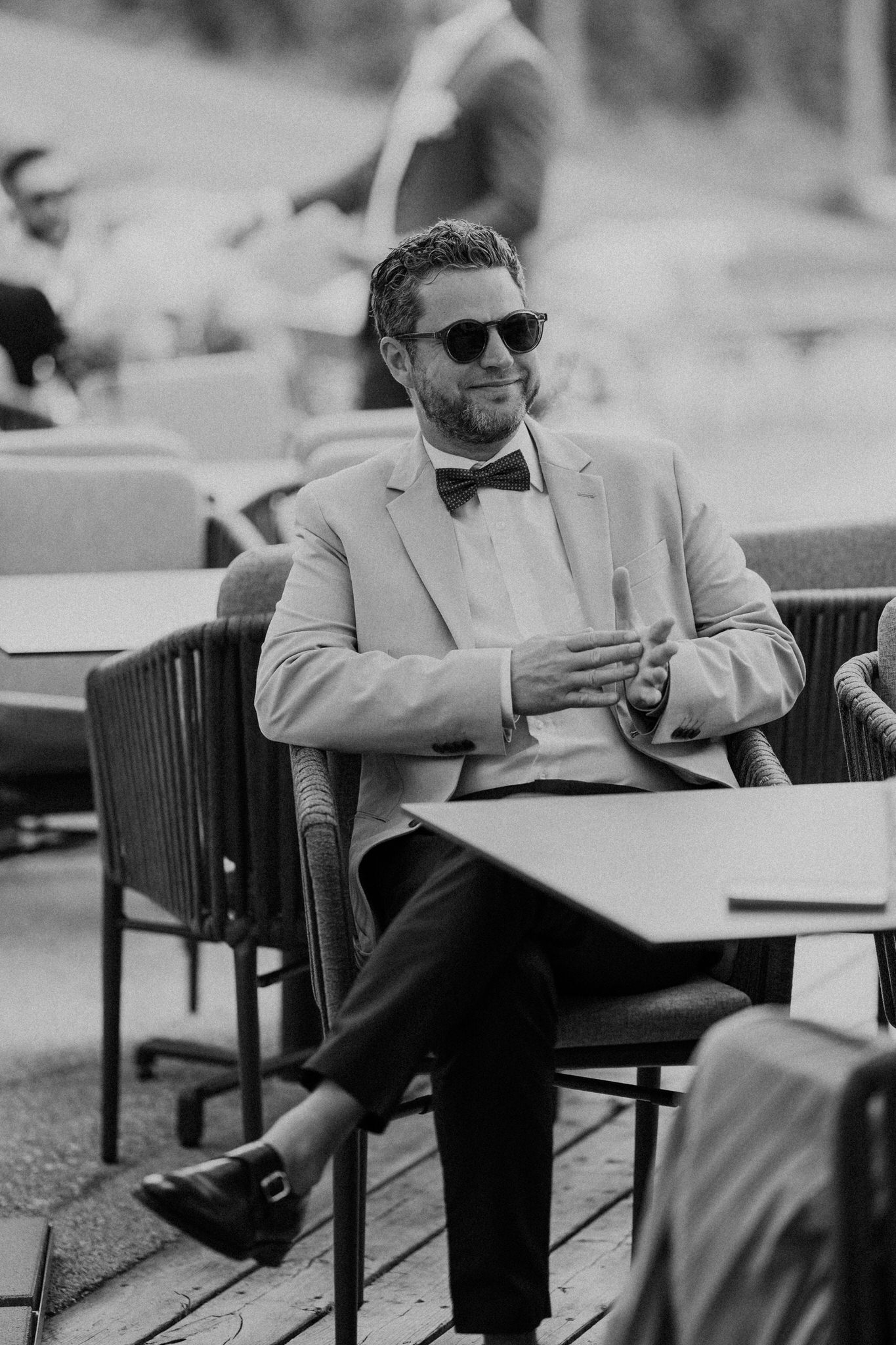 Die freie Trauung auf der Terrasse war persönlich, emotional und liebevoll gestaltet – ein Moment, der nicht nur das Brautpaar, sondern auch alle Gäste tief berührte. Anschließend wurde auf der Sonnenterrasse gratuliert, angestoßen und natürlich gefeiert. Bei Drinks, Hochzeitstorte und viel Lachen genossen alle den herrlichen Nachmittag mit Blick auf die Tiroler Bergwelt.